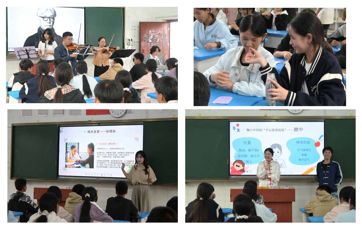 活动以校团委西洋乐团演奏《圣诞快乐劳伦斯先生》拉开序幕,让学生们在优美旋律中感受音乐魅力。中西医结合学院师生通过讲述泸州中医药文化底蕴和全国名中医孙同郊的故事,教授现场脉诊、保健穴位及导引术,让中医药文化在互动体验中活态传承。
