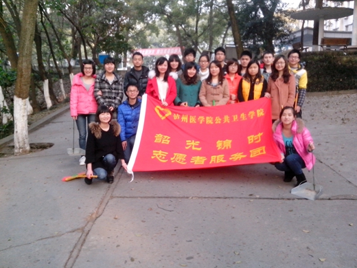 3月5日,在“学雷锋日”来临之际,公共卫生学院韶光锦时志愿者服务团组织忠山校区20余名青年志愿者对忠山校区学术报告厅至民康楼区域的落叶进行了清扫,志愿者们从点滴做起,用自己的实际行动弘扬了雷锋精神。