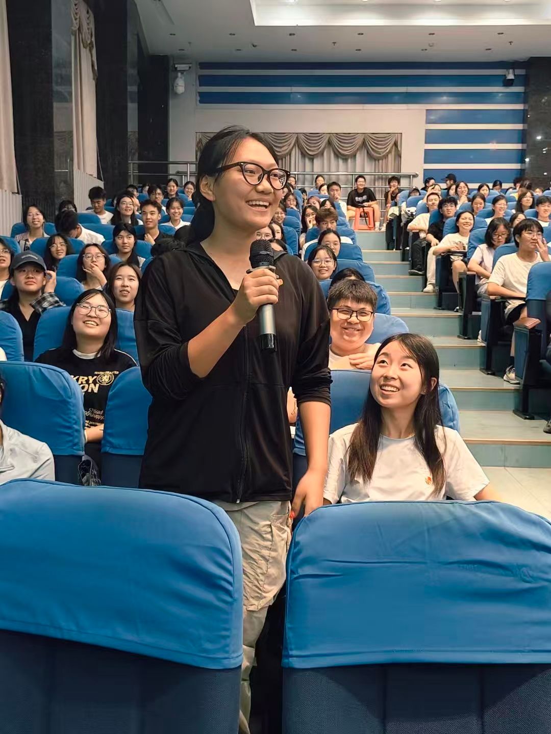 首先,全体学员齐唱团歌,在庄严肃穆的歌声之中,大会正式开始。讲座上,杨娜老师以新颖的“你画我猜”小游戏引入,用简笔速绘勾勒校园标志性建筑,学员们积极参与,气氛融洽,有效达到了“破冰效果”,在轻松互动中加深了对校园文化的认知,更将“爱校荣校”的种子悄然植入心间,让主题教育在寓教于乐中更添温度与深度。